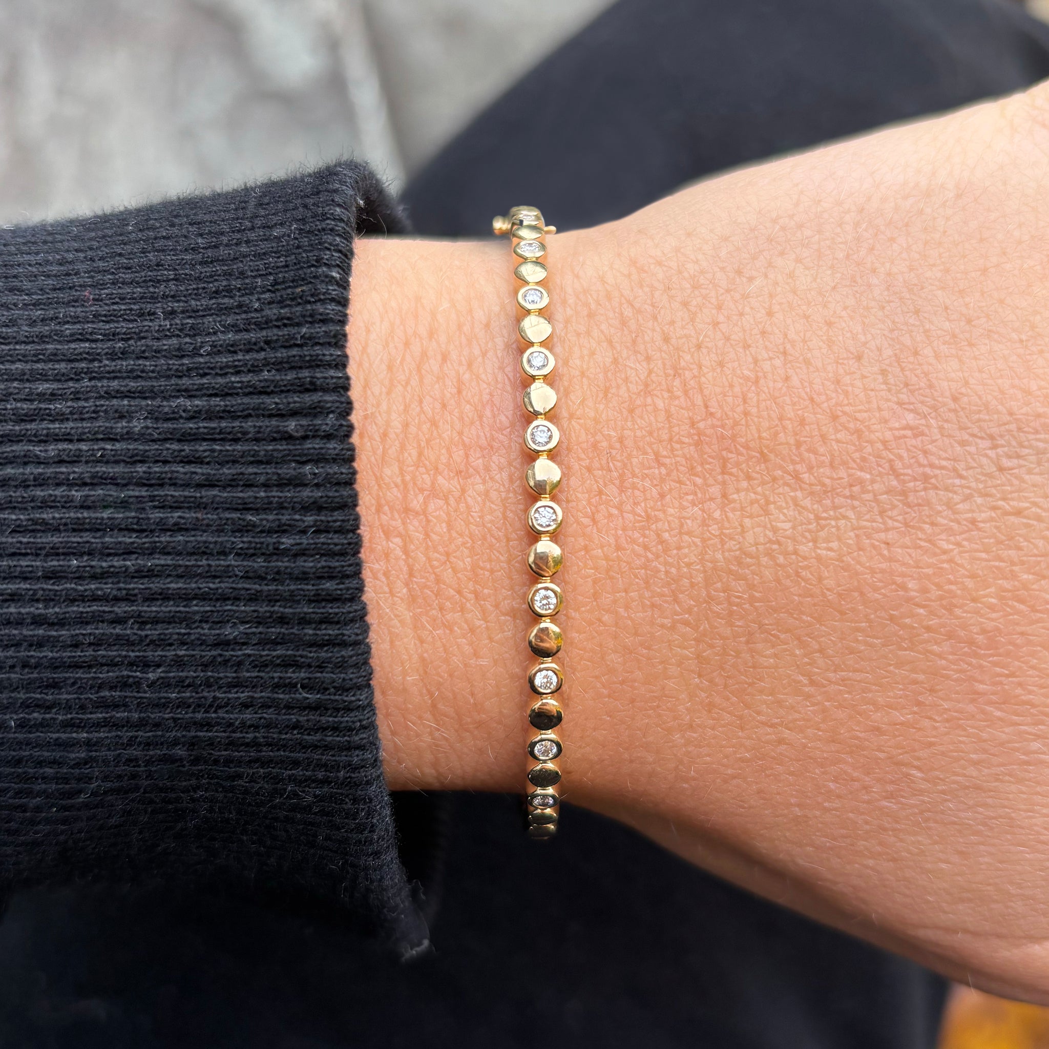 14K GOLD DIAMOND KAREN BEZEL BANGLE
