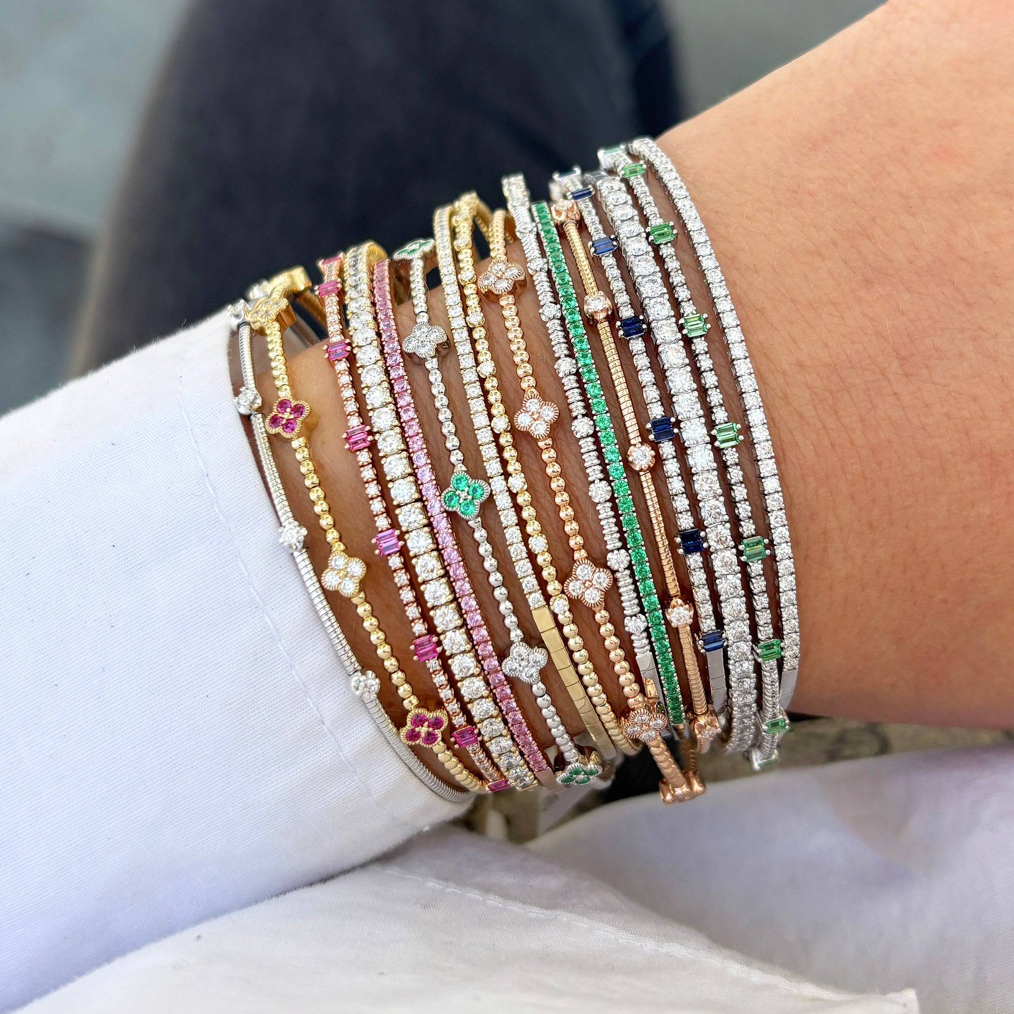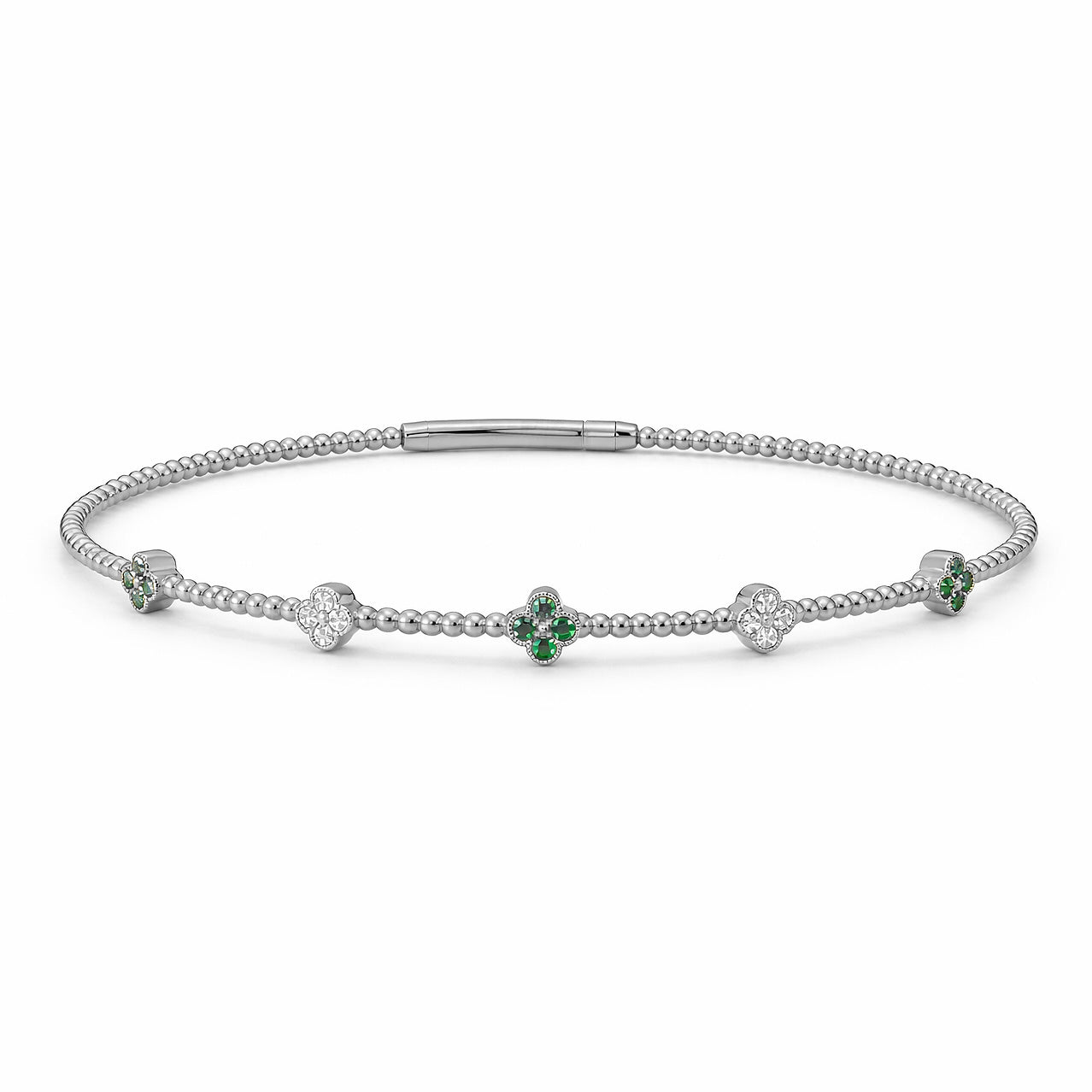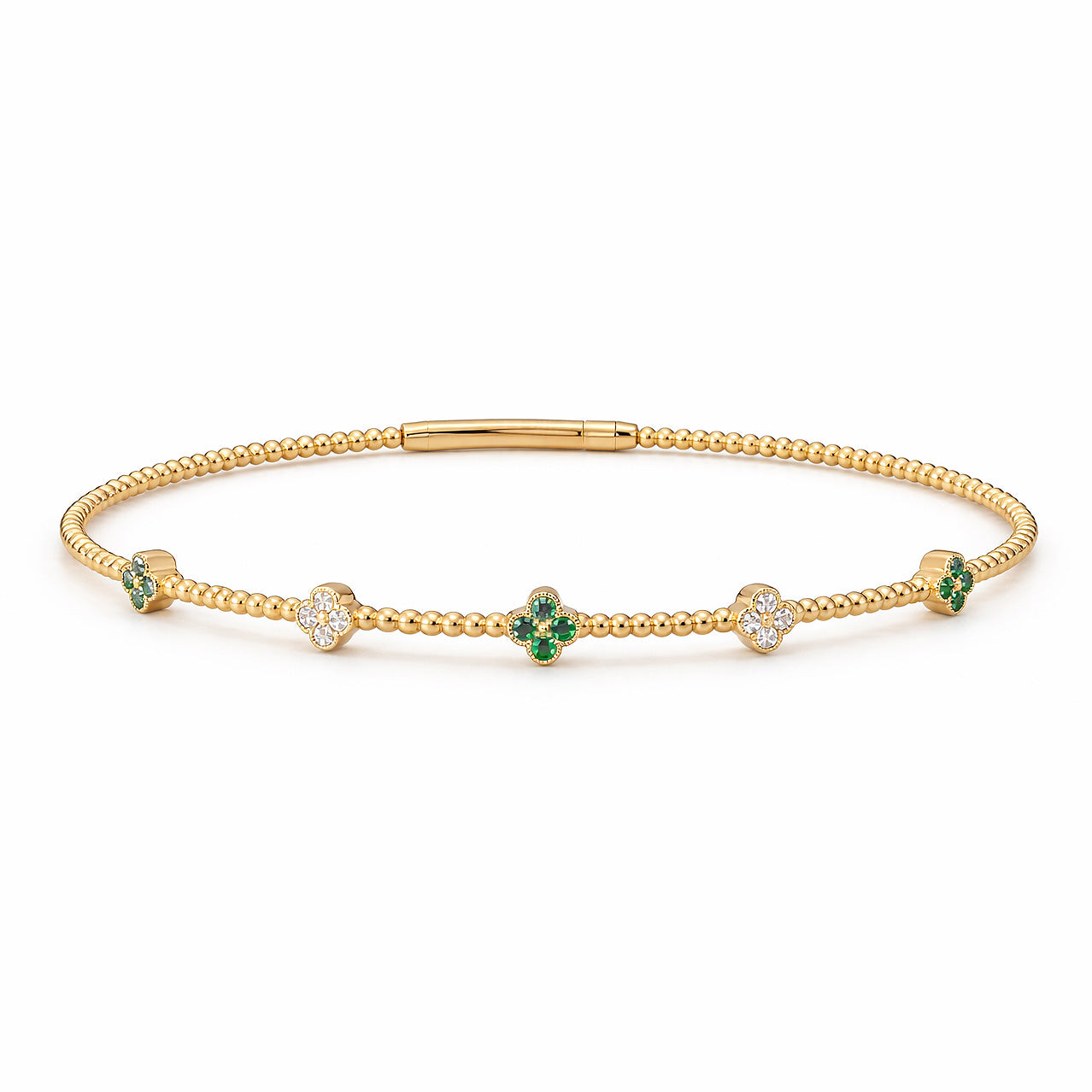 14K GOLD DIAMOND EMERALD CLOVER FLEX BANGLE