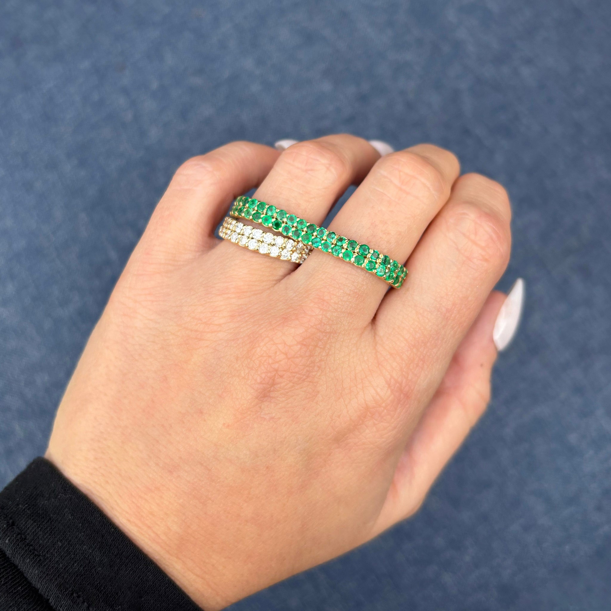 14K GOLD DIAMOND EMERALD LAUREN DOUBLE FINGER RING